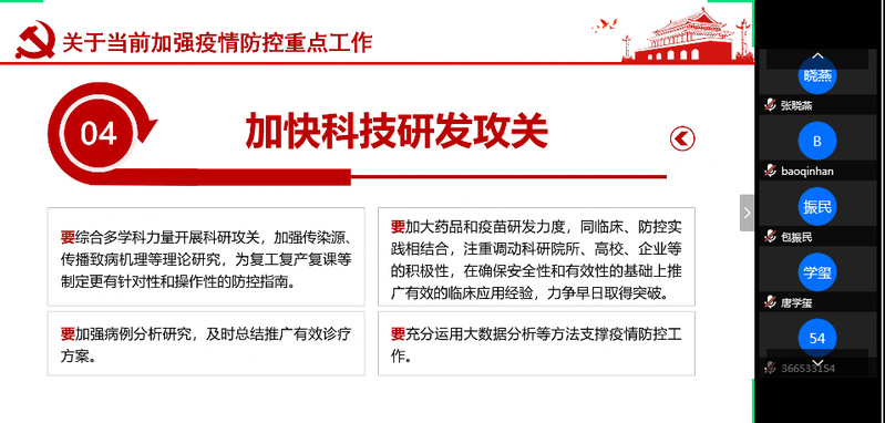 讲话内容由初建松领学,中心组成员对目前疫情防控工作情况总结以及当前加强疫情防控的重点工作等内容进行了深入的学习和理解,同时也对疫情防控形势对经济社会发展的影响做出了进一步的分析,并针对习近平总书记提出的统筹推进疫情防控和经济社会发展工作的总体要求展开研习。