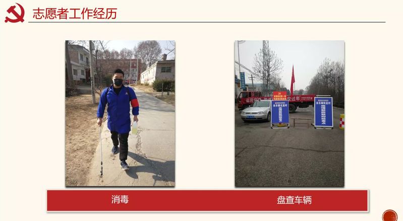 李浩宣讲的主题是《如果我是基层干部,我该怎么办——对农村战“疫”工作的思考》,他结合本次在抗疫中的志愿者经历和与村干部的沟通,向大家全面的介绍农村干部在这次抗疫中工作。宣讲的第一部分讲述了他在从事农村抗疫志愿活动中有消毒和盘查车辆两件工作,结合当地地图,以及确诊患者的分布,说明了封控路口的重要性。
