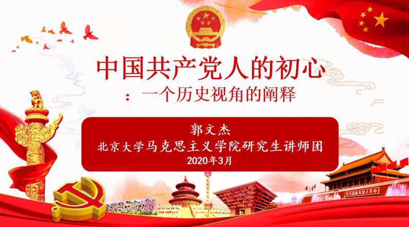 郭文杰的宣讲主题是《中国共产党人的初心:一个历史视角的阐释》,“为中国人民谋幸福,为中华民族谋复兴”是中国共产党人的初心,宣讲第一部分内容是:“初心”是什么,为什么早期先进知识分子接受了马克思主义信仰,为什么他们建立了中国共产党?第二部分内容是:“初心”从哪里来,中国共产党成立以来为民族独立和国家富强做了三件大事,有着三大贡献;第三部分内容是:“初心”到哪里去,从实现工业化到全面小康,从全面小康到富强民主文明美丽和谐的社会主义现代化国家,中国共产党人始终矢志不渝。最后,吾辈青年在当今国家发展的大背景下,要不忘初心、牢记使命、砥砺前行,勇作时代奋斗的前行者。