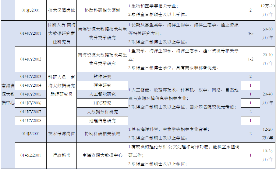 (三)具备应聘岗位所需其他条件。详见《南方海洋科学与工程广东省实验室(湛江)2021年应届毕业生校园招聘岗位表》(附件1)。
