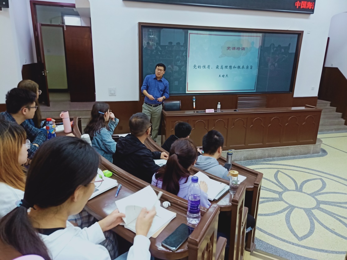 开班仪式结束后,马克思主义学院王绪杰老师为学员们带来了第一次党课—— 《党的性质、最高理想和根本宗旨》。王绪杰老师从“中国共产党代表谁?中国共产党的最高目标是什么?中国共产党为了谁?”三个问题出发,带领培训班成员对党的性质、最高理想和根本宗旨进行了学习。学员们带着问题思考,跟随着王老师的讲授不断深入,一堂课下来,学员们受益匪浅,学习热情十分高涨。