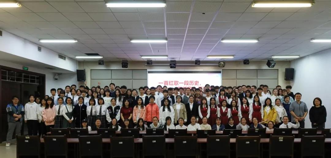 在主持人宣布闭幕后,老师、同学和工作人员们进行合影,本次合唱比赛圆满结束。
