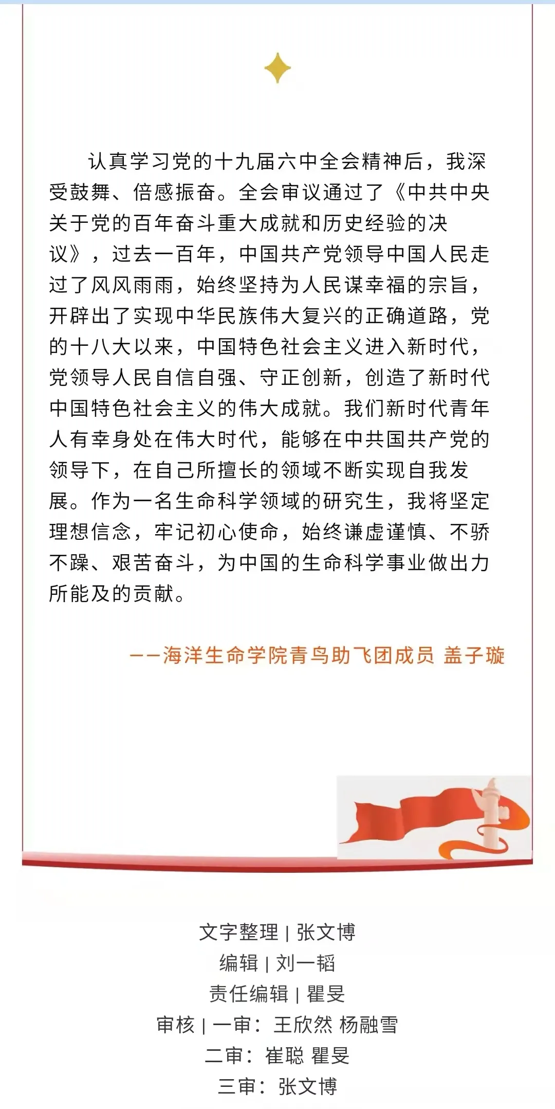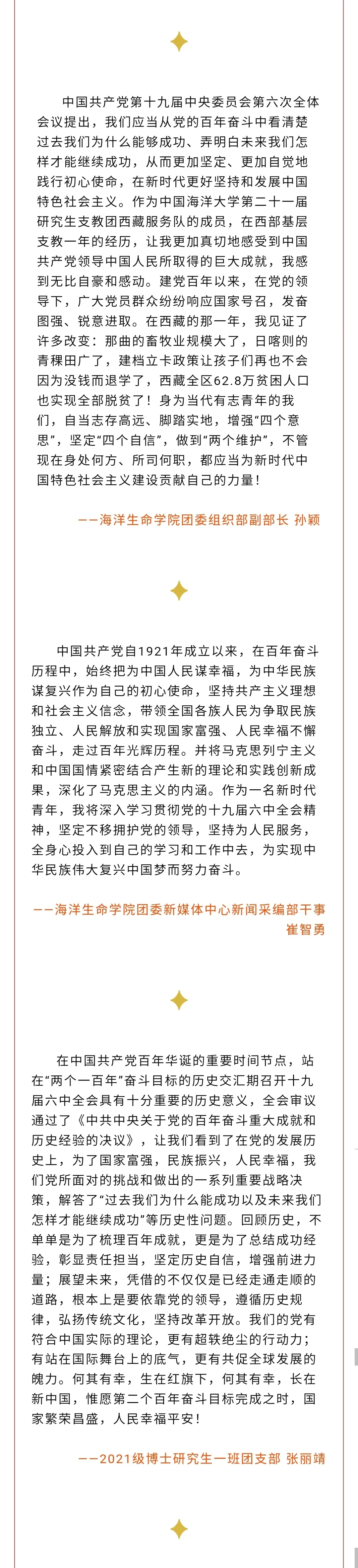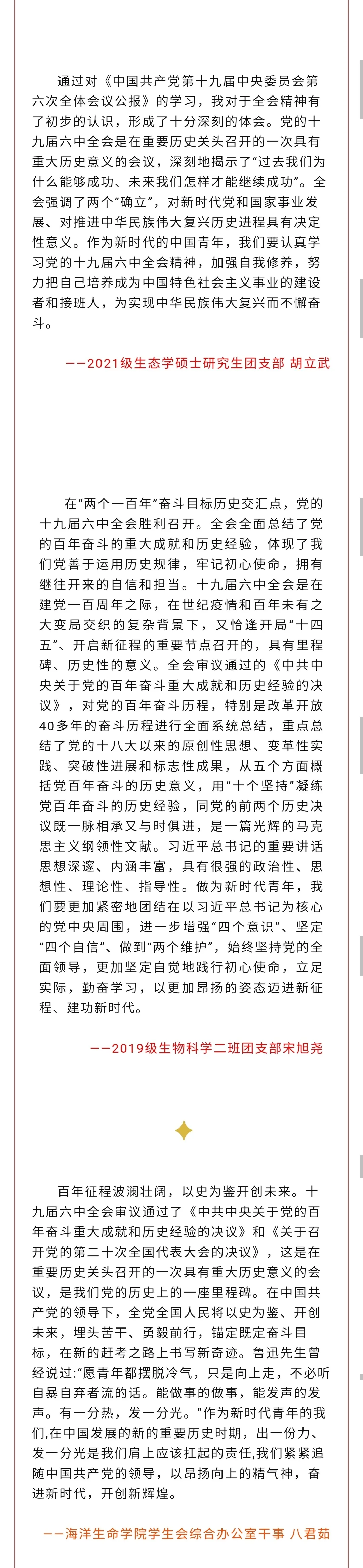 海洋生命学院青年学子热议党的十九届六中全会精神