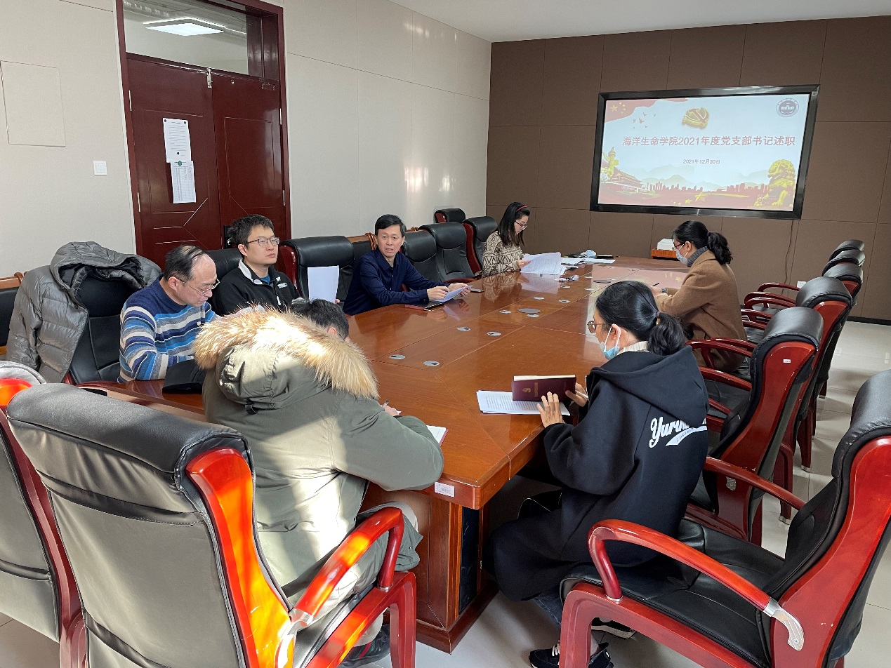 为深入学习贯彻习近平新时代中国特色社会主义思想,贯彻落实党的十九届六中全会精神,进一步加强基层党支部建设,坚持全面从严治党,12月30日,海洋生命学党委院召开2021年度党支部书记述职会。