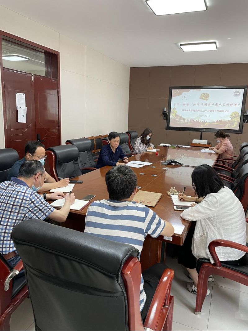 会上,初建松带领大家围绕2022年突破项目开展专题研讨。学院团委书记伍玥琪介绍了《海洋生命学院关于开展“喜迎二十大、奋进新征程”实践教育活动的通知》,党员教师选择第一批纳入中国共产党人精神谱系(共46项)中的一项伟大精神作为开展实践主题,以伟大精神为旗帜,充分挖掘红色精神的历史意义和当代内涵。
