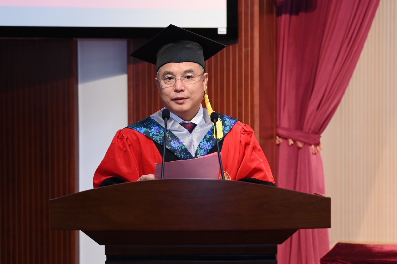张玉忠表示,九十多年来,学院以治学报国为己任,培育出众多优秀学子。通过本科阶段的学习和实践,同学们基本形成了成熟的世界观、人生观和价值观,所获得的能力和品质为同学们报效祖国、服务社会打下了坚实基础。他对毕业生们提出了三点期望和建议:一是“自信而不骄傲”,秉承“求是笃行,谋海济国”的院训精神,不断努力开拓,为个人的未来和祖国的明天不竭奋斗;二是“勇于担当”,将自己铸造为具有“家国情怀、国际视野、厚实基础、勇于创新”的海大生命科学人;三是“怀揣梦想与激情”,诚实面对自我,知行合一,表里如一,明辨是非,独立思考,知难而行,树立远大而又坚实的志向,在反思中进步,不屈不挠,追求科学梦想。