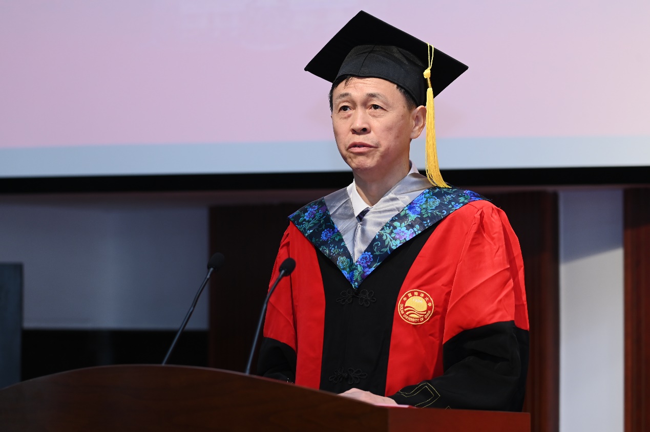 秦贞奎指出,21世纪是生命科学的世纪,也是海洋的世纪,生命学子应谨记“求是笃行,谋海济国”的院训,做到学有所用,利用自己的所学服务社会,服务国家创新驱动发展、建设科技强国的战略,为强大我们的国家贡献自己的力量,体现个人的价值。他希望毕业生们能够将四年所学所得用到实处,做有理想、敢担当、能吃苦、肯奋斗的新时代好青年,用青春的能动力和创造力、用青春的智慧和汗水去奋斗。