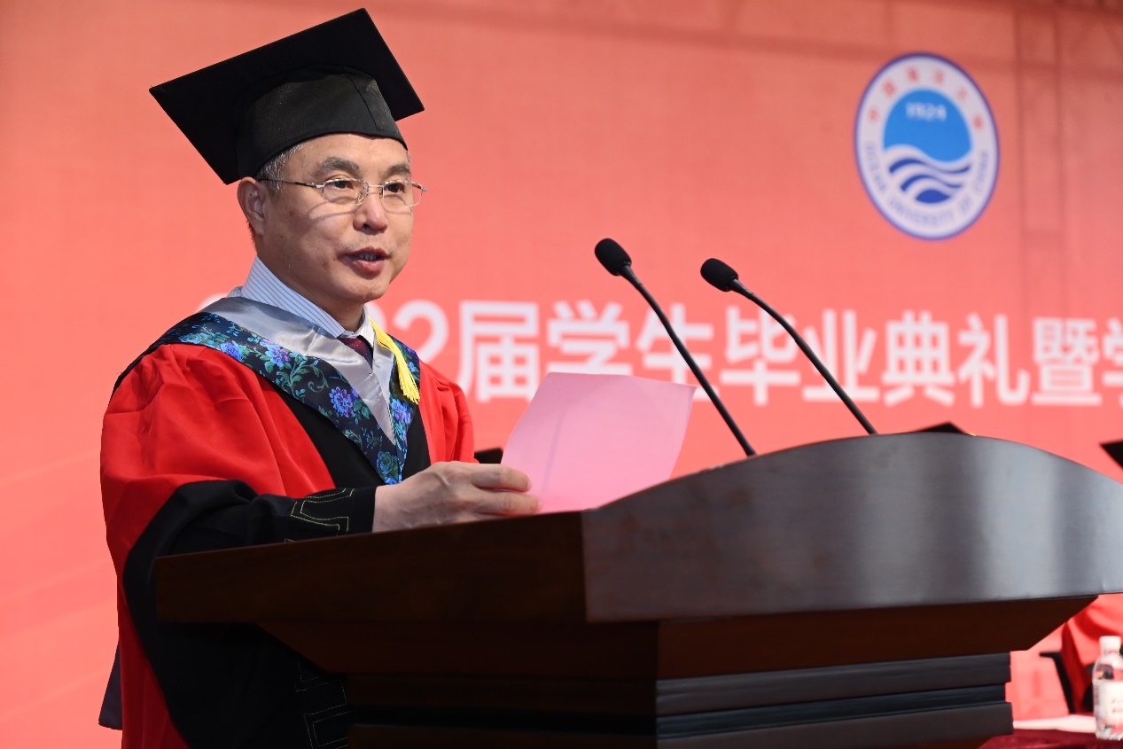 学校党委书记田辉、校长于志刚通过视频方式向广大毕业生殷切寄语。田辉强调,海大培养的是可堪重用、能担重任的栋梁之材,希望同学们牢记海大人对党忠实、为人诚实、学识扎实、干事踏实、作风朴实、进取求实的“六实”特质,在中华民族伟大复兴的历史进程中继续谱写无愧于时代、无愧于人民的绚丽篇章。于志刚校长表示,广大毕业生在未来的人生旅途中应谨记三件事:记得每天读书,静心思考,汲取智慧;记得每天运动,强健体魄,愉悦身心;记得责任使命,发展自我,服务社会。把个人理想和民族复兴的伟大事业更加紧密地结合起来,为中国更加美好的未来做出海大人应有的贡献。