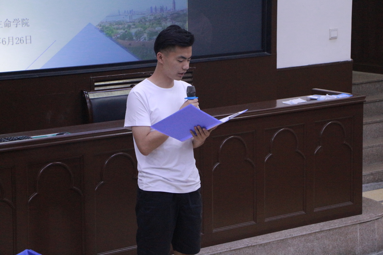会议第四项,学院2022年暑期社会实践学生代表曹赛发出社会实践倡议。他表示,学院2022年暑期社会实践团队全体成员要积极投身实践,坚定理想信念,彻悟“无字之书”,贡献青春力量,在社会实践中绽放光彩,在实现“两个一百年”奋斗目标和中华民族伟大复兴中国梦的征途中奏响开云电竞网址海洋生命学院的时代强音。