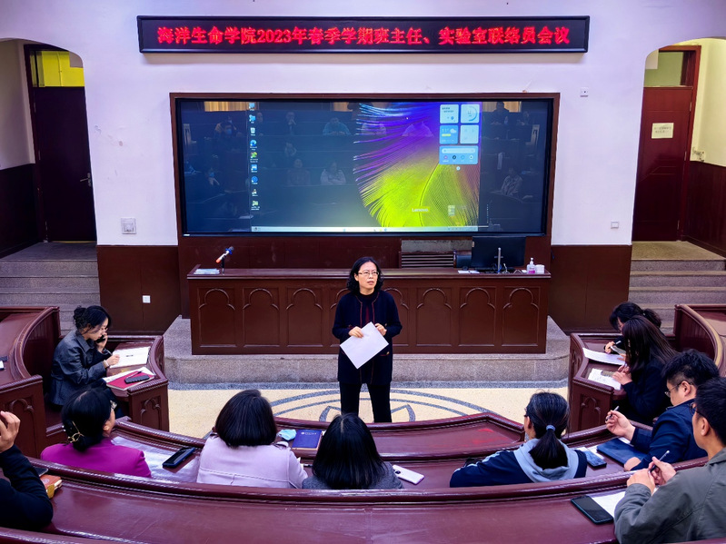 为深入贯彻落实学生安全教育管理工作的相关要求,进一步强化班主任、实验室联络员在学生管理中的积极作用,4月19日下午,海洋生命学院2023年春季学期班主任、实验室联络员工作会议在鱼山校区科学馆K111举行。学院党委副书记张晓燕主持会议,学院辅导员、班主任、实验室联络员参加会议。