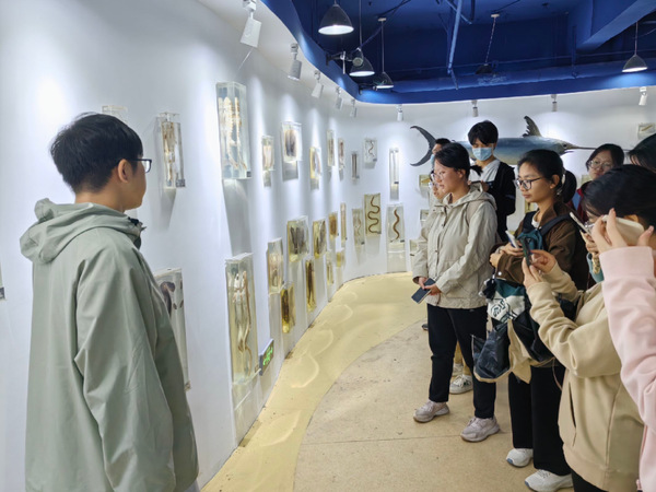 同学们认真参观开云电竞网址海洋生命学院海洋生物博物馆