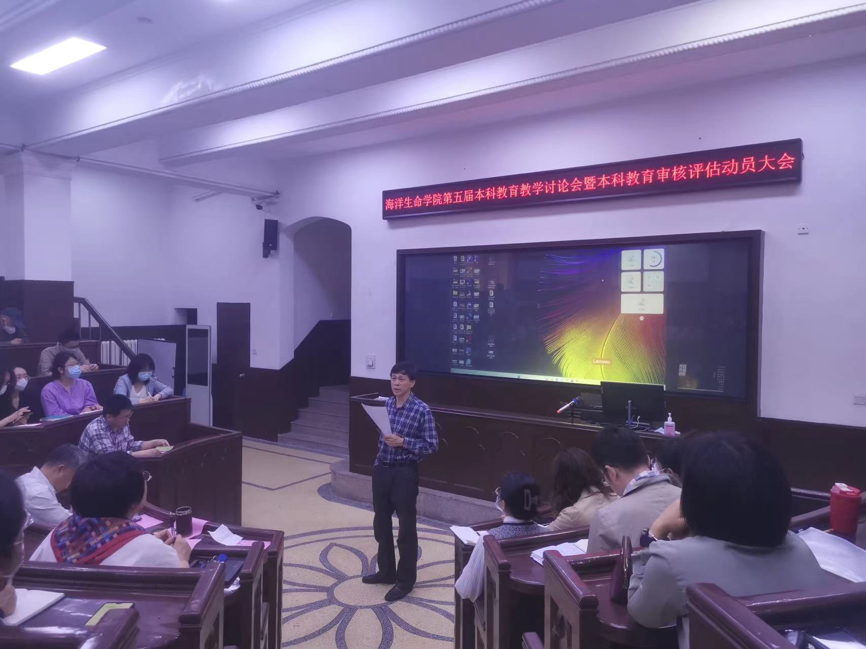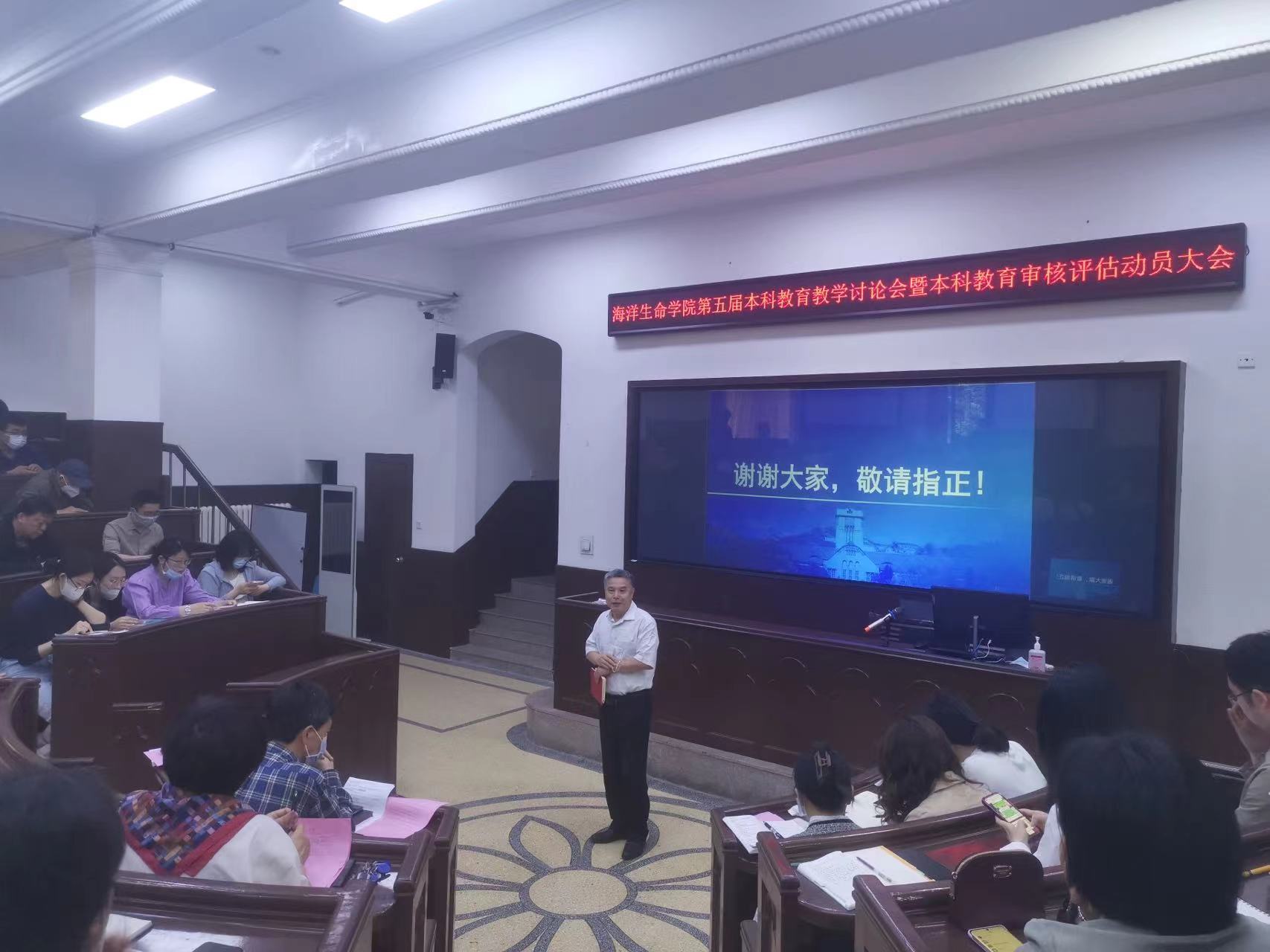 2023年5月29日上午,海洋生命学院召开了“第五届本科教育教学讨论会暨本科教育教学审核评估动员大会”。会议由汪岷副院长主持,初建松书记、张玉忠院长及全院教职工参会。首先,汪岷副院长介绍本科教育教学讨论会及审核评估工作;接着,初建松书记强调了本科教育教学评估重要性。参会教职工集体学习了本科教育教学审核评估参评高校培训会视频。集体学习后,汪岷副院长介绍了学院本科教育教学审核评估工作进展,并布置了后续工作安排。最后,张玉忠院长进行了总结讲话。