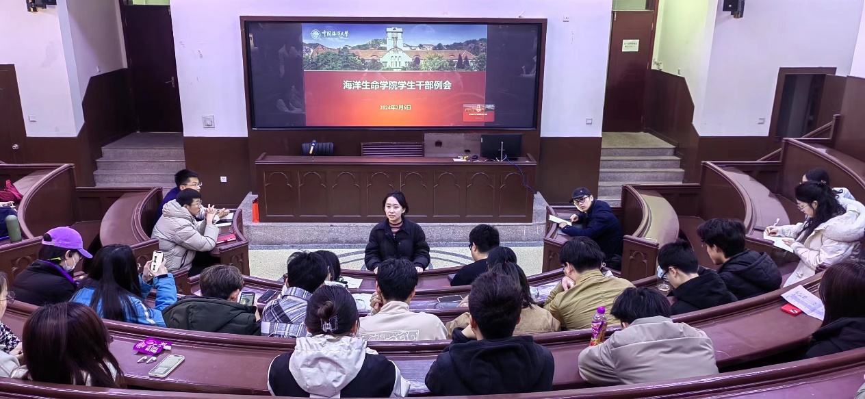 3月6日,海洋生命学院学生干部例会于科学馆K111教室召开。会上,学院专职团干部陈琪、王音波、田鑫带领全体学生骨干学习校园消防安全知识。