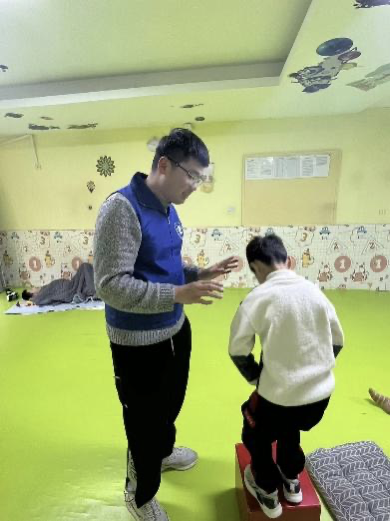 此外,志愿者们还与孤独症儿童一起进行体育锻炼,通过注意力训练和游戏疗法来训练孩子们的节奏感和身体协调能力,提高了孩子们的身体素质。