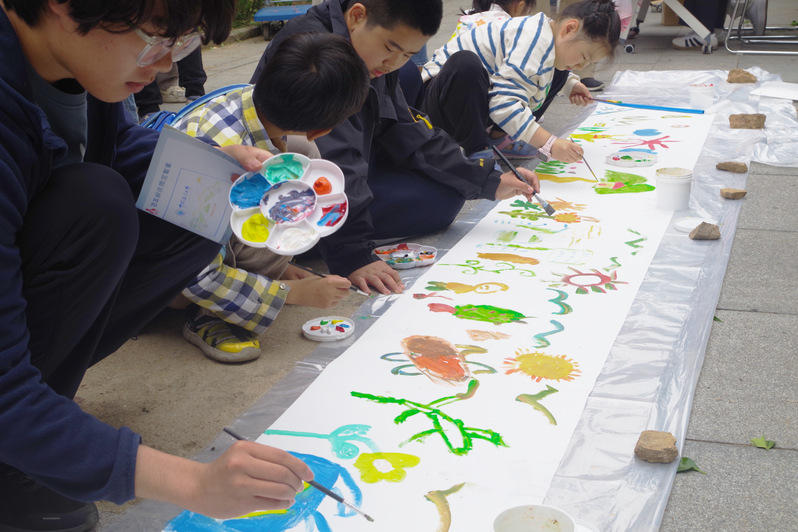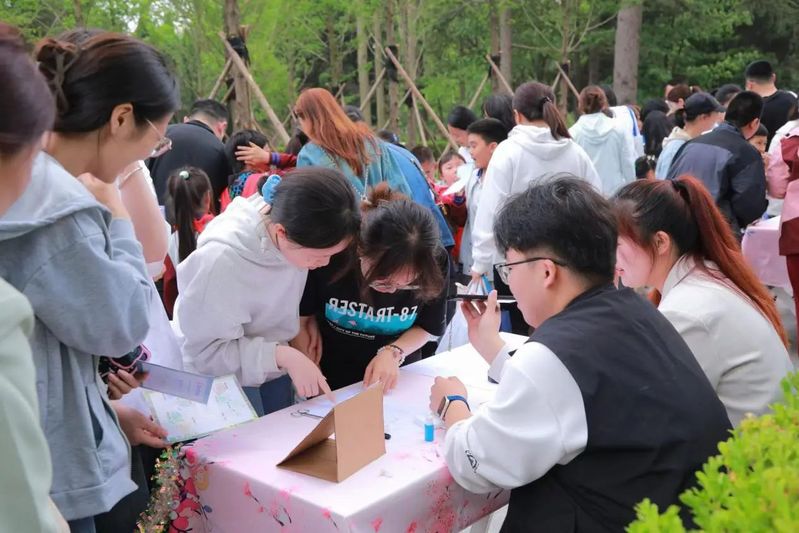 市集里最显眼的摊位莫过于“共绘一幅画”了。铺开一张画卷,准备琳琅满目的画笔和颜料,参与者挥洒色彩,用画笔捕捉心灵的瞬间,将内心的情感与思绪跃然纸上。随着时间的推移,画布上的色彩逐渐丰富起来,各种图案和线条交织在一起,形成了一幅充满创意和个性的作品。