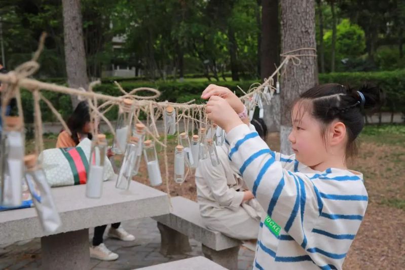 “心事漂流瓶”摊位深受大家喜爱,小小的漂流瓶承载着每个人的心声和秘密。它们被精心挂在麻绳上,形成了一道独特的风景线。一个心灵的驿站,让参与者在这里找到归属感和共鸣。