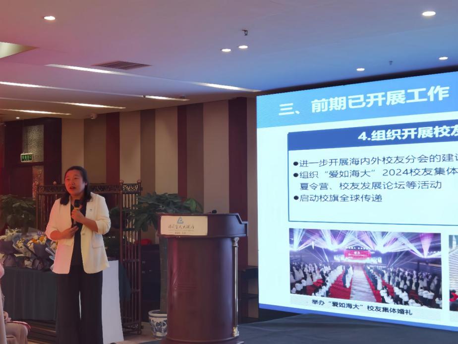 孟凡介绍了学校庆祝建校100周年工作安排和2024年校友活动安排,并表示热烈欢迎校友常回母校。