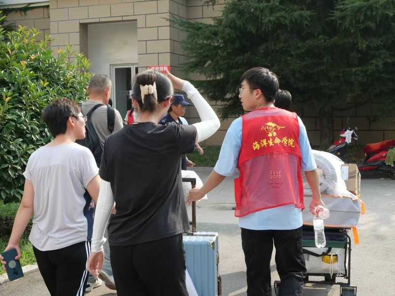 老师们也来到报到现场,欢迎新同学的到来。海洋生命学院党委副书记、副院长张晓燕与辅导员老师们慰问现场服务的志愿者和工作人员,并来到学生宿舍与新生及新生家长进行亲切交流,第一时间了解新生到校后的情况,帮助其尽快融入新环境。学院为每一间宿舍的新生对接了一名“朋辈之友”,帮助新生尽快适应大学学习生活。