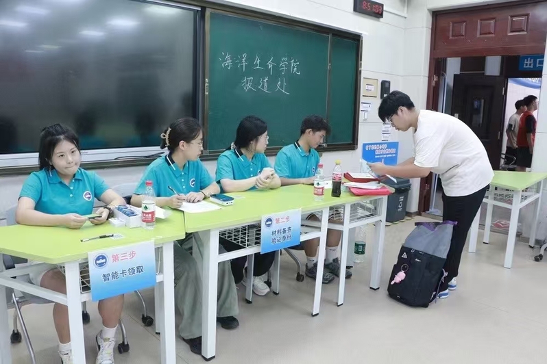 注册流程高效推进,在教学楼六区的注册报到点,学籍核验工作顺利进行,新生在志愿者的指导下依次提交各项材料,完成身份证读取、指纹录入、照片采集等身份信息核验环节,正式成为“海之子”的一员。