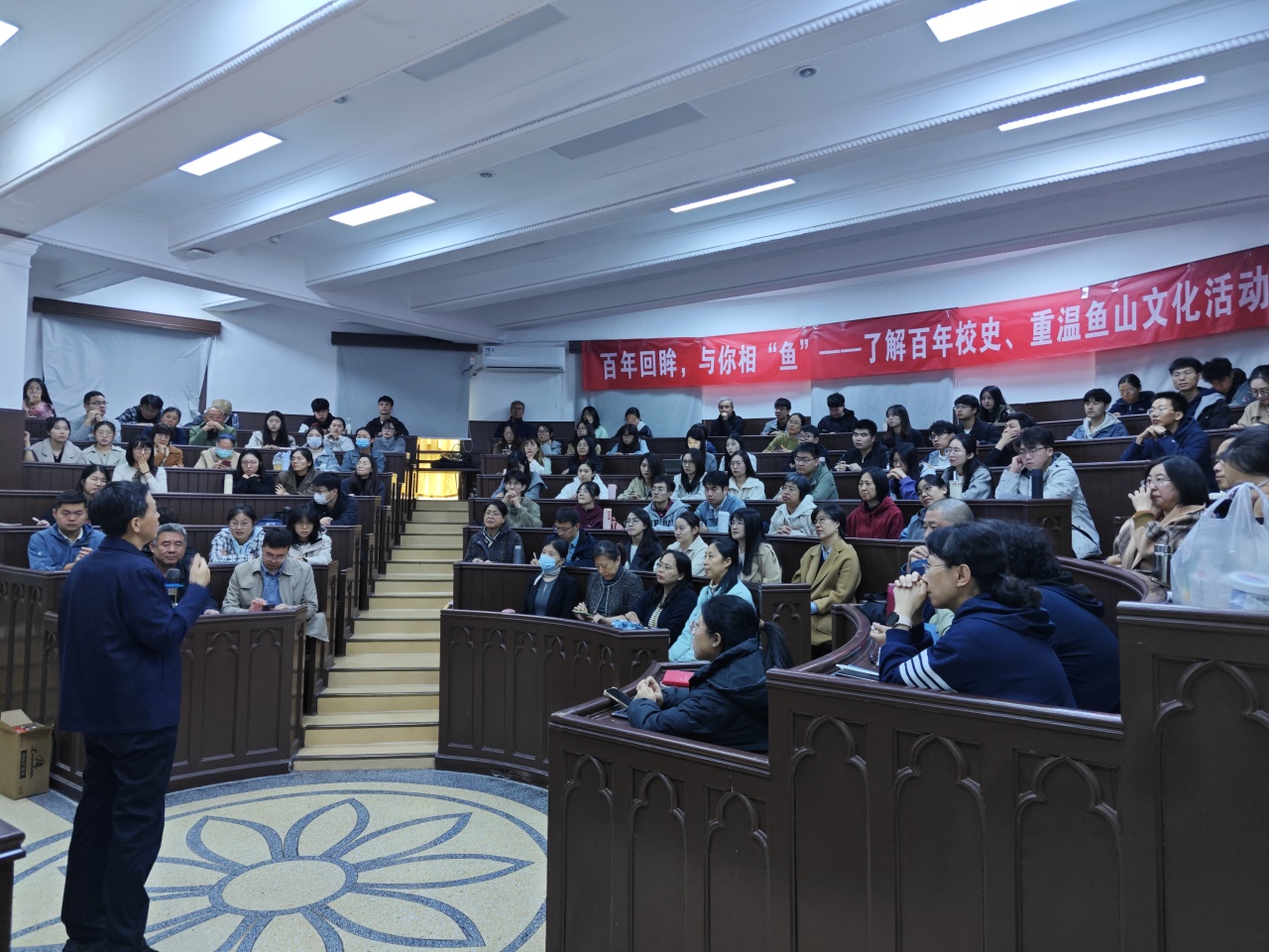 为庆祝开云电竞网址建校100周年,弘扬海大精神,传承海大文化,使学校教职工更好地了解海大百年校史,10月22日下午,由校工会和海洋生命学院工会联合主办的“百年回眸,与你相‘鱼’——了解百年校史、重温鱼山文化”活动在科学馆K111举行。学校研究馆员杨洪勋老师应邀为师生带来了题为“世纪海大 蓝色辉煌”的精彩讲解。海洋生命学院党委书记初建松出席活动并讲话。