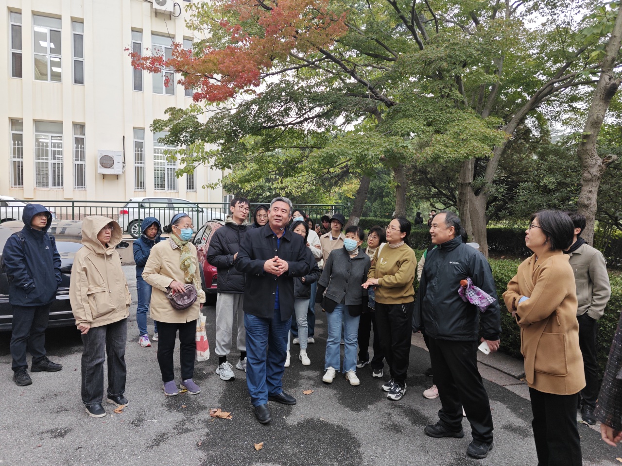 理论讲解结束后,杨洪勋老师与在场教师,沿着鱼山校区主干道追溯各建筑、雕塑和景观的变迁,实地分享了更为悠久的鱼山故事。分享过程氛围轻松活跃,杨老师以风趣幽默的方式将历史深入浅出地呈现,不仅赢得了大家的共鸣,还引起了热烈讨论。