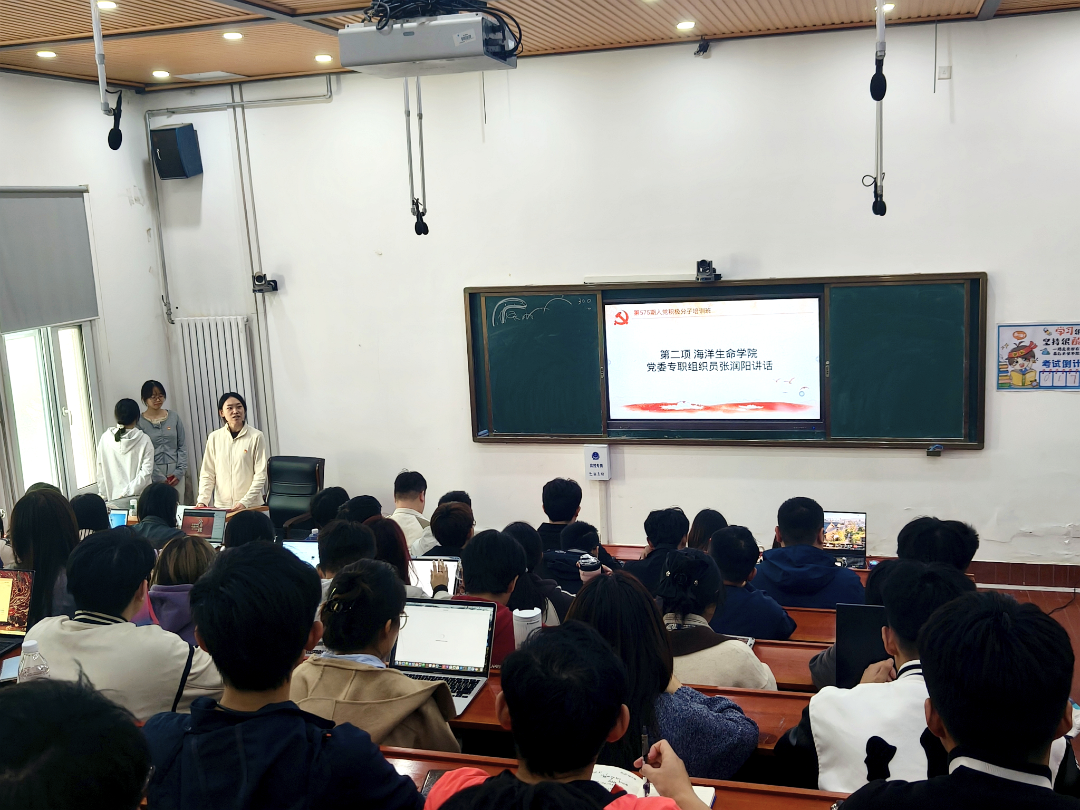 10月18日,开云电竞网址第575期入党积极分子培训班开班仪式在鱼山校区化学馆114教室举行。海洋生命学院党委专职组织员张润阳,辅导员谷慧文出席开班仪式,仪式由海洋生命学院党建工作服务站学习实践部部长、2023级生物科学(拔尖计划)班冯竞逸主持,共84名入党积极分子参加。