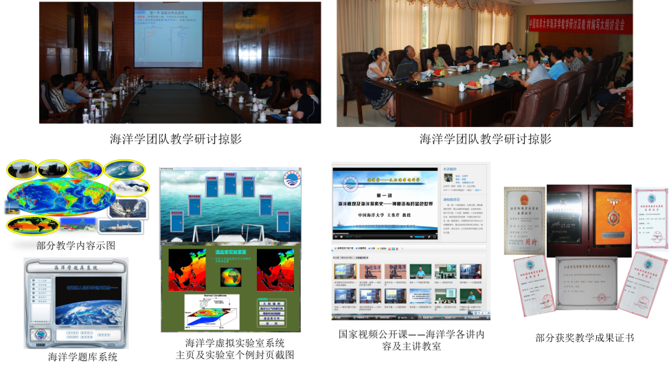 近年来组建课程教学团队,承担全校的海洋学教学任务。通过每年定期召开多种形式的教学研讨、无偿共享教学资源、组建专家顾问组扶持授课教师等方式,快速提升青年教师教学水平,海洋学课程整体教学水平不断提升。海洋学课程教学团队于2007年获国家级教学团队称号。
