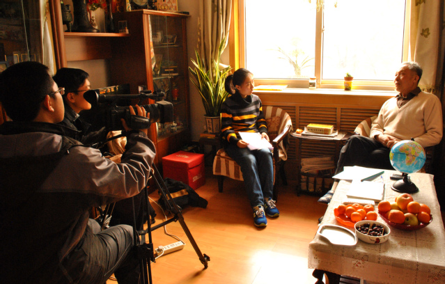 因为不熟悉路线,我们比约定时间晚到了几分钟。打开门,映入眼帘的是王教授慈祥的面容,高高的个子,虽已年过古稀,还是声音洪亮、笑声爽朗而亲切。夫妇俩热情招待我们坐下,给我们端上水果,我们因为紧张而悬着的心放松了不少。王教授的家虽然不大,却给人温馨之感,各种摆设朴实无华,桌上还放着地球仪和地图册,卷起的页脚,仿佛在昭示着它的主人曾一遍又一遍地翻阅。在轻松愉悦的氛围中,我们开始了这次访谈。