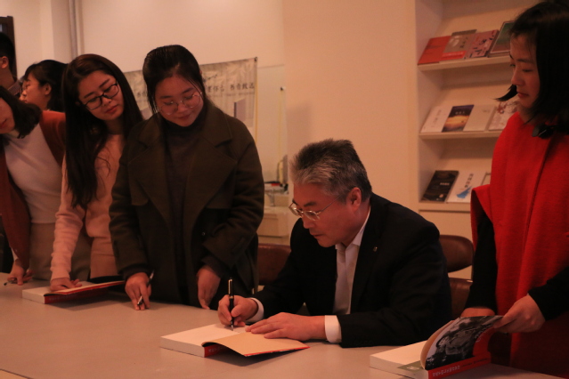 研究生们结合自身读书的感悟,纷纷分享了读书的收获和启发。活动最后,主办方赠送给参加活动的每位同学一本《习近平的七年知青岁月》,在大家热情的邀请下,于校长亲自为每位同学在该书上赠言签名。