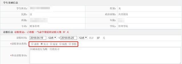 ①实习、病假、大部分事假均需要相关证明文件作为附件上传至系统中,如病假,需上传病例照片;如实习,需上传实习证明+教务课程表无课截图;求职、返家、小部分事假辅导员会跟家长取得联系再次确认请假事由。