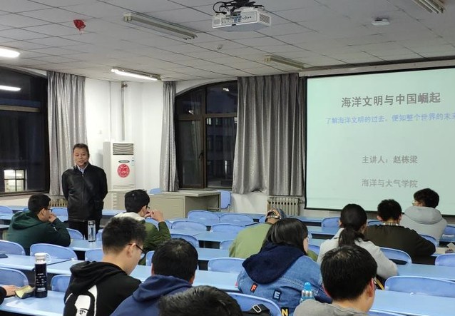 最后,赵栋梁教授告诫各位学生,不仅要学好数物知识,也要对海洋知识拥有深刻认知。中国崛起在认知学习海洋文明中,我们也要在学习海洋文明中努力成为未来相关领域的栋梁。