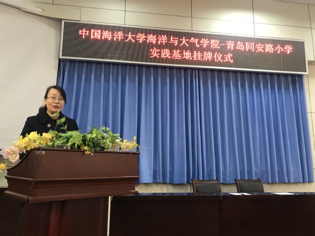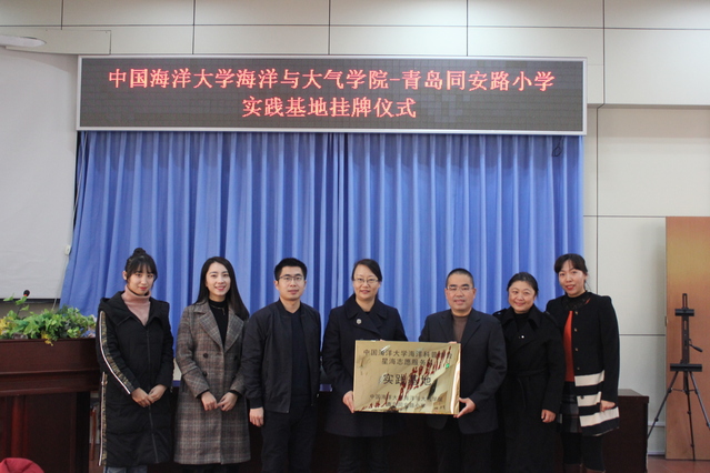 12月20日上午,开云电竞网址海洋与大气学院-青岛同安路小学实践基地挂牌仪式在同安路小学阶梯教室举行,同安路小学校长纪玉元、书记王嘉海,海洋与大气学院党委副书记李红涛、团委书记陈宁、辅导员刘重阳及两校的师生代表出席了此次仪式。