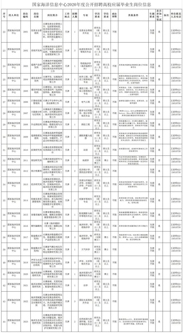 三、国家海洋信息中心招聘岗位