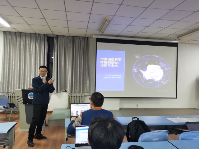 12月23日晚,海洋与大气学院在学院536教室开展主题为“中国南极科学考察的过去、现在与未来”主题讲座,海洋学系主任史久新担任主讲人。
