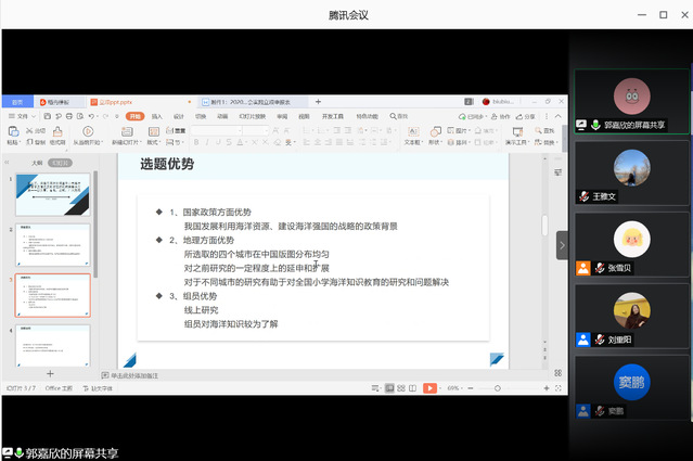 本次共有来自海洋与大气学院和崇本学院的二十一支队伍(个人)代表参加答辩。此次答辩采取项目展示与提问点评相结合的方式进行。各支队伍(个人)从不同切入点选题立项,选题涵盖了海洋科普、助力抗疫、助农扶贫、红色文化等多个方面,答辩者分别从项目简介、选题原因背景、内容与形式、具体计划、预期成果、经费预算及安全预案等方面进行简要陈述。针对各支队伍(个人)项目情况,老师们进行了提问并提出改进建议,重点强调了疫情防控常态化形势下的安全问题,并结合学院专业特色重点对“海洋梦·强国梦”专项行动队伍进行指导。