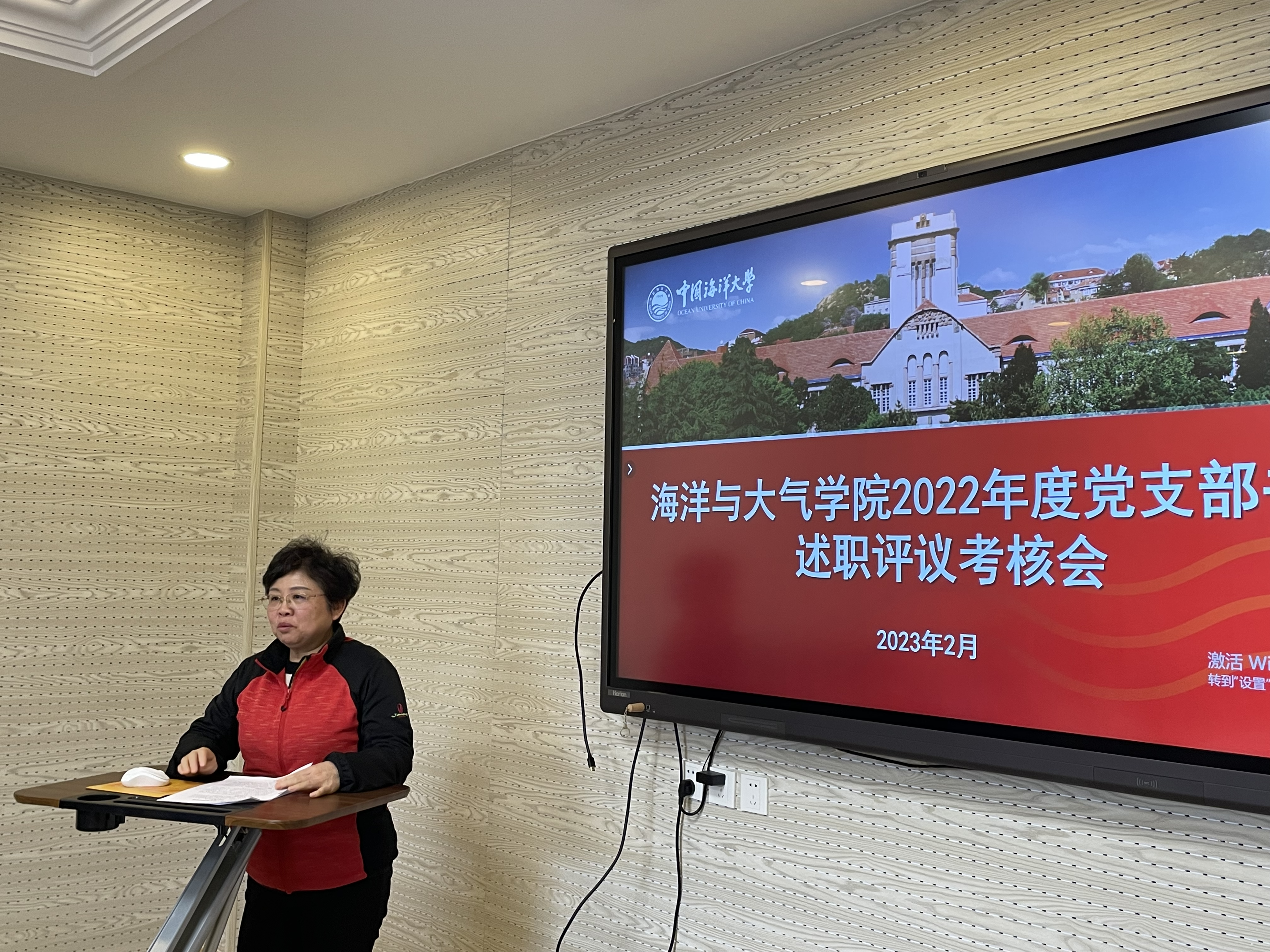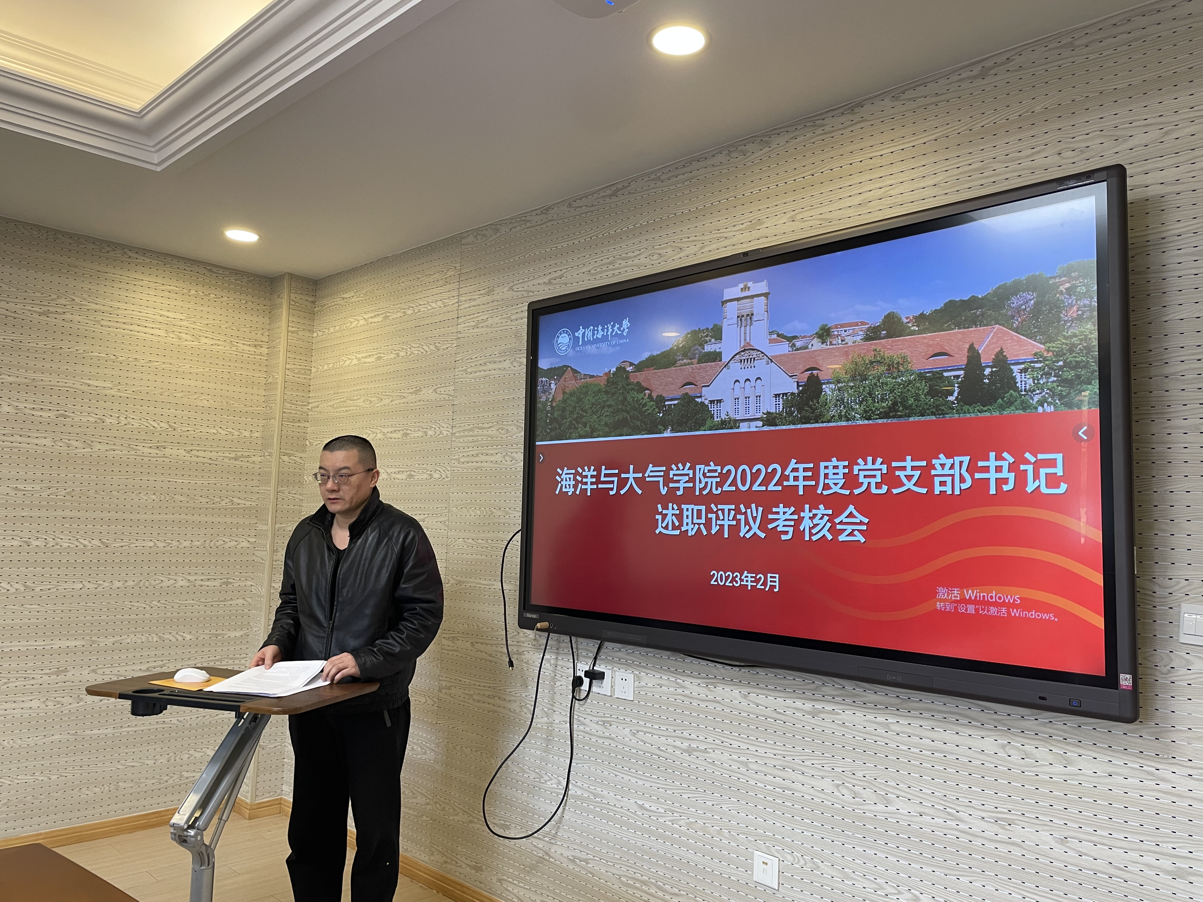 会上,学院党委听取了各教工党支部书记2022年度述职报告。海洋学系教工党支部书记李涛、海洋气象学系教工党支部书记赵传湖、物理海洋教育部重点实验室教工党支部书记陈显尧、机关党支部书记刘晓春围绕党支部成绩和经验、特色做法、工作中的突出问题和个人履职方面的不足等方面进行现场述职。王曙光逐一点评并强调,各党支部要持续围绕“七个有力”高起点高质量开展工作,落实“三会一课”和主题党日制度;加强“一支部一品牌”建设,团结凝聚更多青年党员力量参与党支部建设,强化品牌示范引领作用;发挥党支部战斗堡垒作用及党员先锋模范作用,对标争先,争创一流。与会人员根据述职和日常了解情况进行了现场测评。