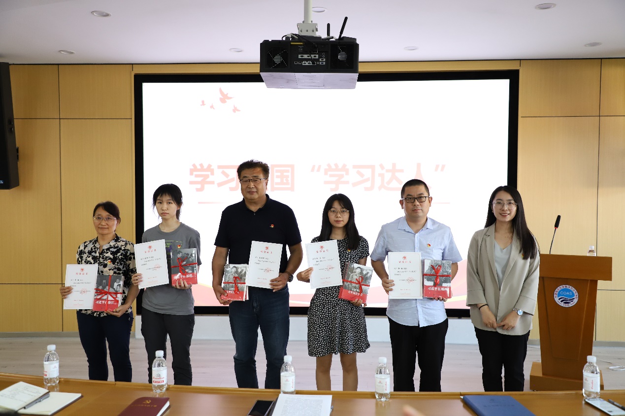 教工优秀共产党员代表、海洋气象学系教工党支部石剑,学生优秀共产党员代表、大气科学本科生第一党支部安棋戎,“学习达人”代表、海洋学系教工党支部宋梅,“学习之星”代表、海洋科学(中外合作办学)本科生第一党支部王雅文依次上台发表获奖感言。