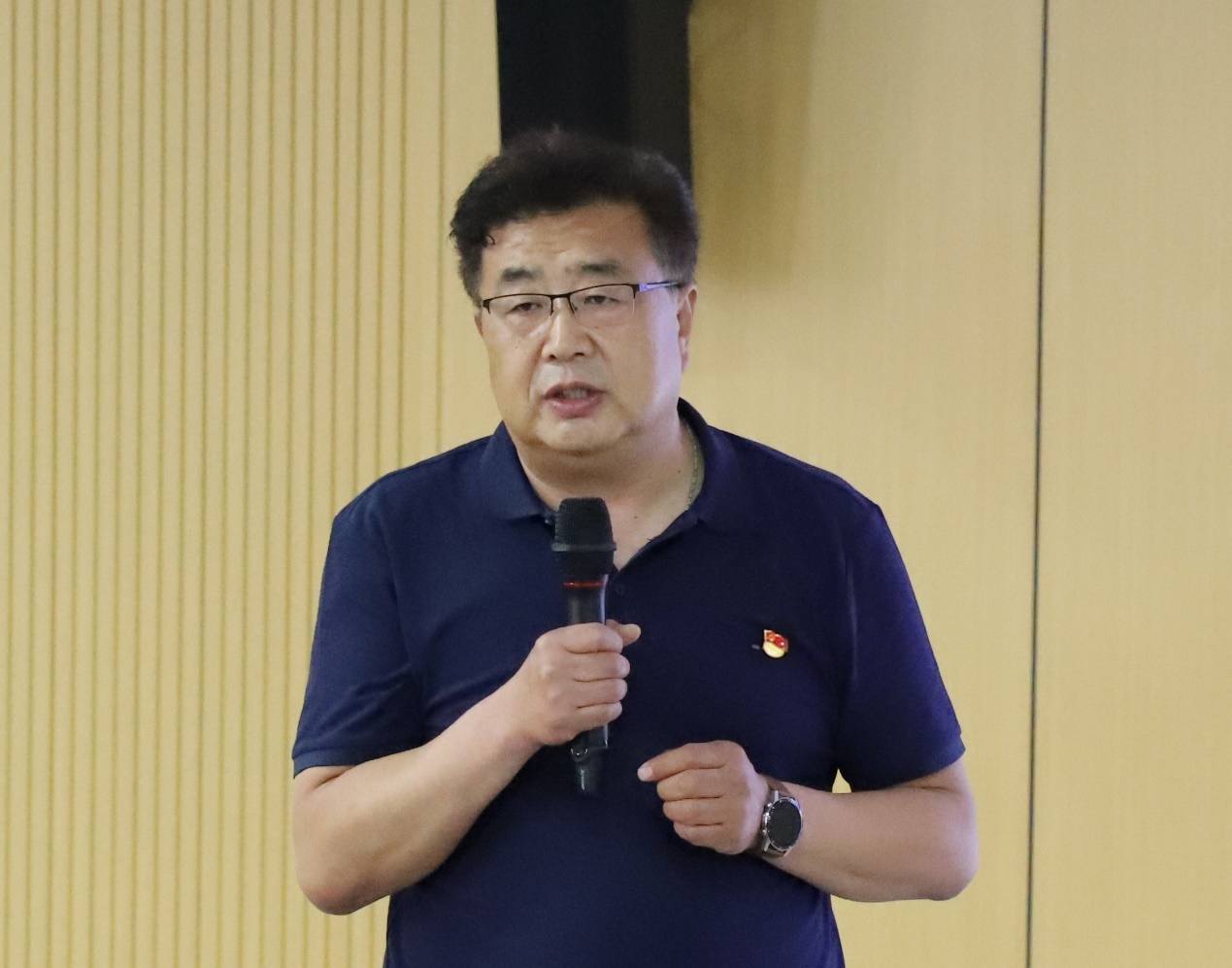 大会在庄严的国歌声中开幕。王曙光向辛苦奋战在教学科研实践工作一线的广大党员和师生,向受到表彰的先进集体和个人表示热烈的祝贺和衷心的感谢。他指出,学院党委以党的思想路线为指导,求真务实推动主题教育走深走实,全面推进一流学科高质量发展。王曙光提出“三个做表率”:一是要在不断加强与改进政治理论学习上做表率。通过坚持不懈地学习,不断增强“四个意识”,坚定“四个自信”,坚决做到“两个维护”,始终在思想上政治上行动上同党中央保持高度一致。二是要在落实党支部“七个有力”上做表率。师生党支部都应该坚持对标对表,努力争先创优,以提升组织力为重点,依托“三会一课”“主题党日”“实践教育”等活动方式,切实肩负起教育、管理、监督党员和组织、宣传、凝聚、服务师生的职责。三是要在凝心聚力推动发展、助力学生成长成才上做表率。响应习近平总书记号召,推动海洋科技实现高水平自立自强,加强原创性、引领性科技攻关,坚持立德树人根本任务,培养海洋领域人才到国家需要的地方去,做国家需要做的事。