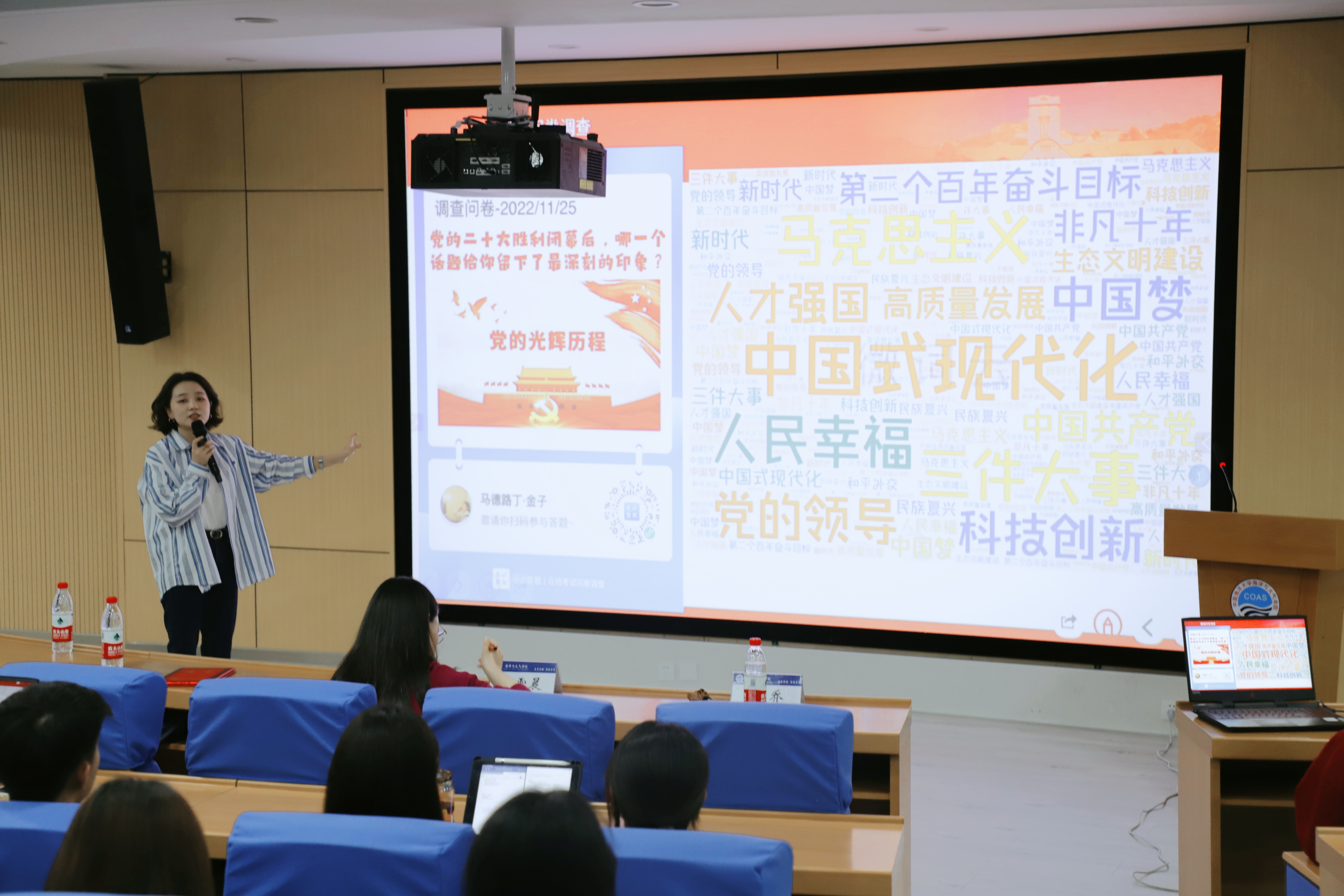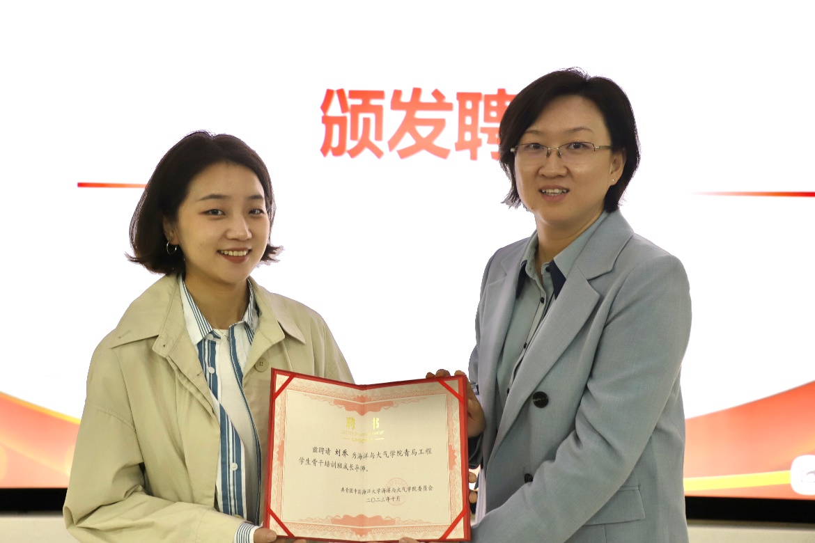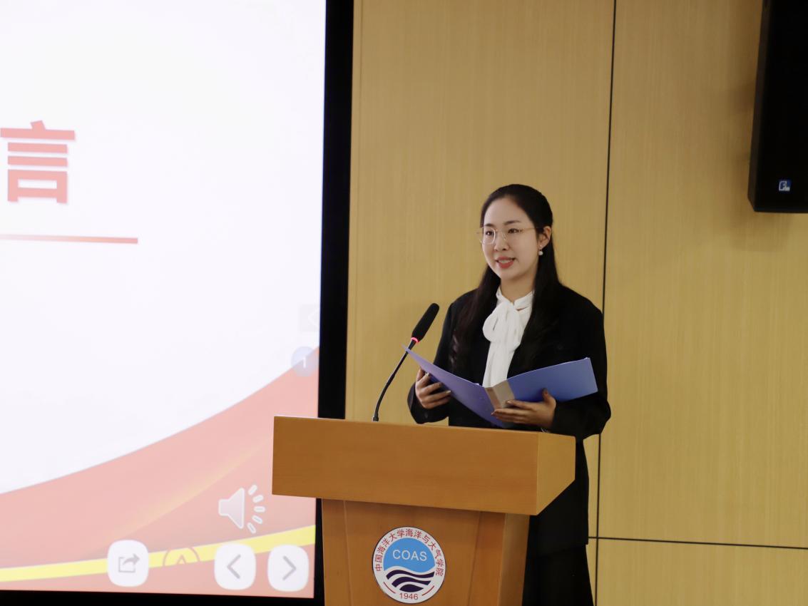 往届优秀学员程宝仪通过总结在上一学年培训班的所学所获,激励新一届成员履行骨干义务,提升党团素养,抓好新时代接力棒,在海洋与大气学院的广阔航道上奋勇前行。