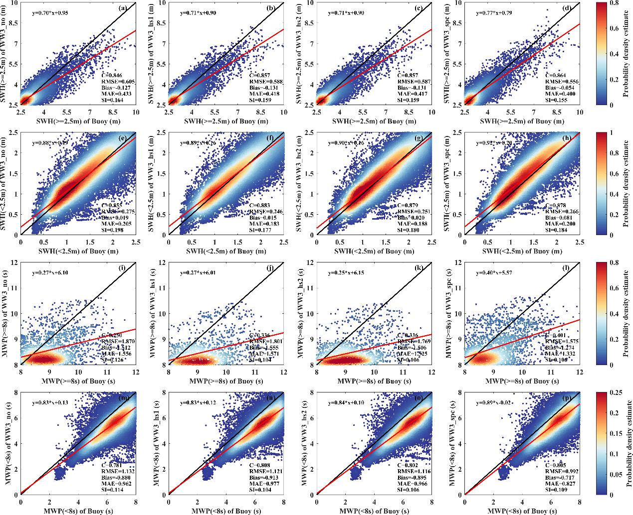 1. WW3模拟结果与浮标数据的散点密度图