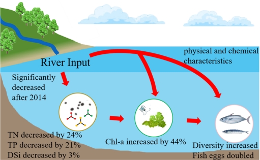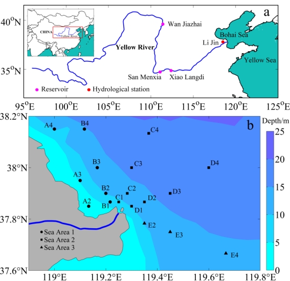 黄河口是我国重要的自然保护区,其生态多样性及其重要是鱼类重要的产卵场、索饵场和栖息地,径流所携带的泥沙和营养盐对莱州湾、渤海海峡甚至黄海生态均有重要作用。人们为解决“地上悬河”问题,自2002年开始,每年6月实施黄河调水调沙工程,在汛期到来前通过小浪底等水利设施人造洪峰进行清淤,人工调水调沙期间向海里排放的径流量和泥沙量分别占全年的28%和54%。调水调沙工程可有效治理河道泥沙淤积问题,但同时也可能打破黄河口原有的生态平衡。人工调水调沙事件可使河口营养盐浓度增加8-30,影响河口物理化学特征,进而作用于整个河口生态。