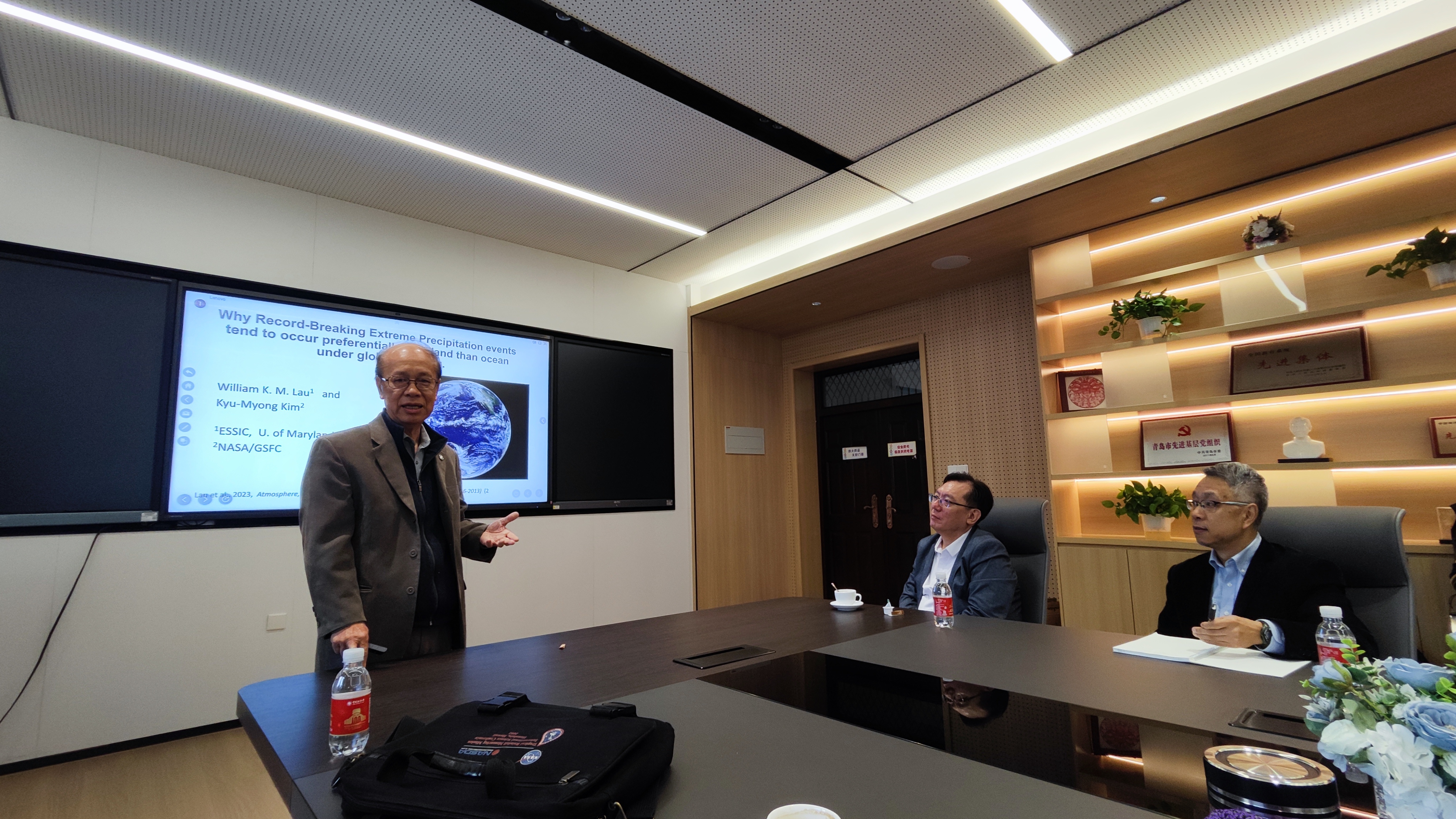 11月21日,地球系统科学交叉研究中心 (ESSIC) 资深科学家,马里兰大学(University of Maryland)大气与海洋科学系兼职教授William K.M. Lau受邀作为“同心·问海”系列报告第一百期的主讲人,进行了题为“Why Record-Breaking Extreme Precipitation Events in the Tropics Tend to Occur preferentially over Land rather than over Open Ocean under Global Warming?”(在全球变暖的背景下,为什么热带地区破纪录极端降水事件倾向于发生在陆地而不是开阔的海洋上)的学术报告,报告由海洋与大气学院副院长黄菲教授主持。
