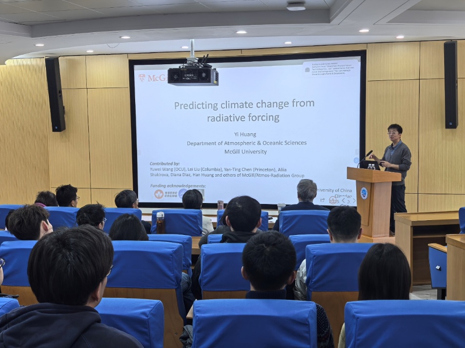 4月1日,加拿大麦吉尔大学大气与海洋科学系Huang Yi教授受邀请作为“同心·问海”系列报告第108期的嘉宾,作了题为“Predicting climate change from radiative forcing”的学术报告,报告由海洋与大气学院教授吕健主持。
