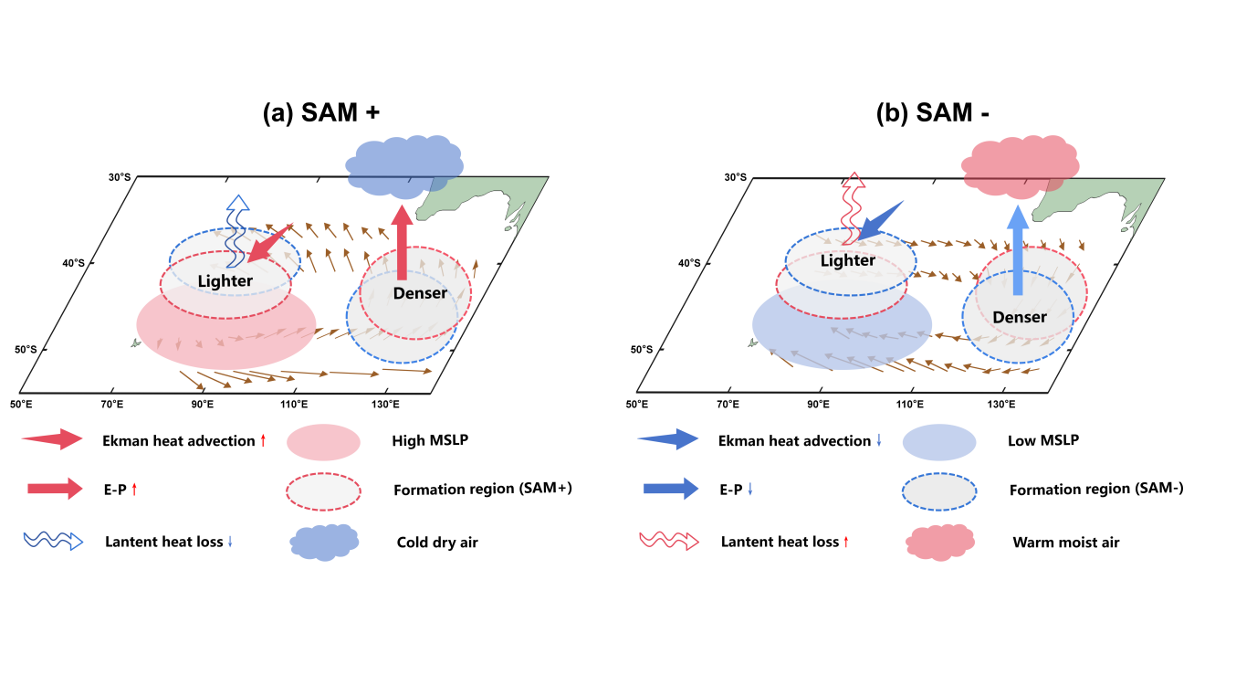 亚南极模态水的形成和输运作为南大洋上层经向翻转环流的重要组成部分,在海洋热量、淡水和二氧化碳的收支平衡和再分配过程中发挥着重要作用。目前关于亚南极模态水的形成机制以及输运特征,已经开展了广泛的研究,而本研究则着重探讨了南印度洋亚南极模态水输运变化对南半球环状模(SAM)的响应机制。