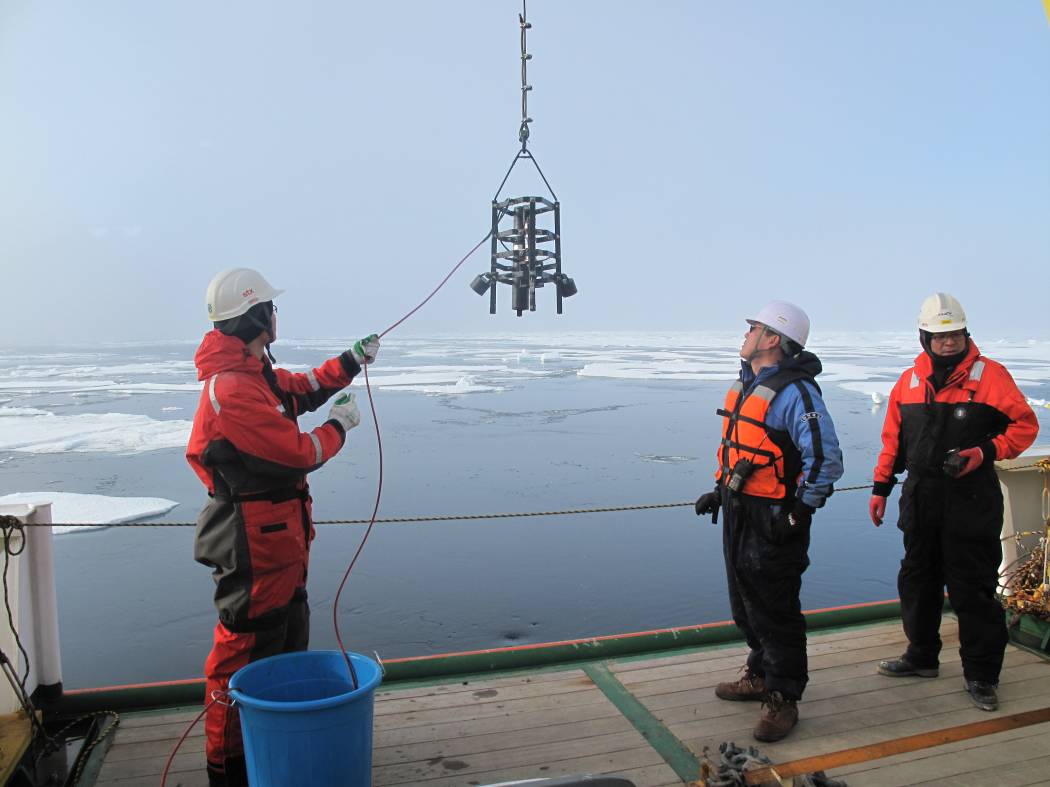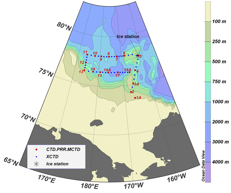 考察海域是北极海冰刚刚开始融化的海域,我国的破冰船无力进入该海域。韩国的ARAON号破冰船破冰能力较强,可以直接破2米的海冰,使获得海冰融化期海洋的物理结构成为可能。通过上述观测,可以了解海冰融化初期海洋对太阳辐射能的吸收、海洋增暖及冰面融池对海冰融化的影响、以及融冰过程对气候变化的影响。