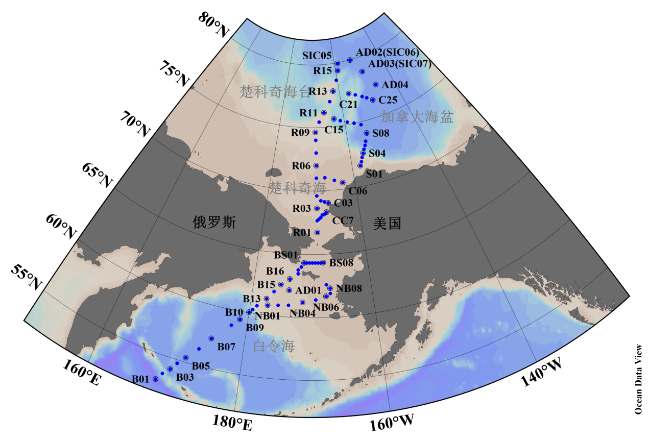 图1中国第六次北极科学考察站位图(钟文理绘)