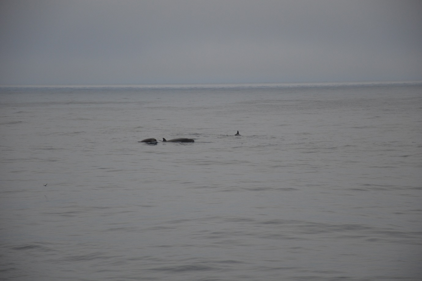 上图(史晓翀摄):调查期间并非格陵兰海的捕鱼季节,观测期间周边海域内往往只有我们乘坐的这条水文调查船,好在每次行驶到寒流和暖流交汇区时总会发现一群群海洋的黑色精灵—小型捕食类鲸鱼。虽然并不知道它们的具体名属,但时每次它们出现总会伴随着队员们的大好心情,不仅仅因为见到同类(哺乳动物),更是因为它们三五成群在海面惬意觅食嬉戏的时候,也意味着此刻正是气旋过后短暂而难得的宁静海况。
