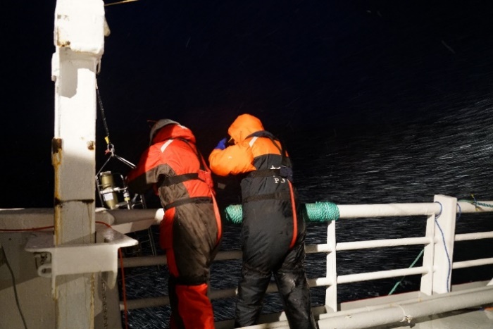 本次调查是我实验室在北极大西洋扇区的重点海域—北欧海所主导的第五次海洋调查任务,同时也是青岛海洋科学与技术国家实验室首次资助的北极大西洋扇区国际航次。本次航次的调查范围基本覆盖了格陵兰海盆全部区域,所获数据将有利于深入分析由夏入冬季节中格陵兰海内部对流区域分布和溢流水性质的变化特征。位于莫恩海脊上的深海潜标资料有效地弥补了目前国际上对北欧海中央区长期监测能力不足,为后续科学问题的深入研究和未来中挪深化合作均提供了良好的基础与契机。(王晓宇)
