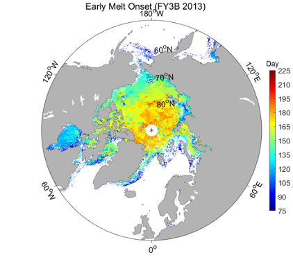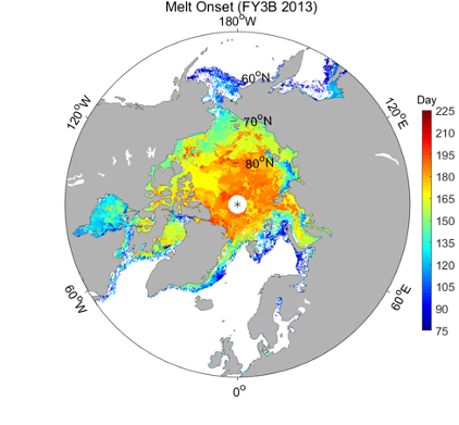 FY-3B、FY-3D/MWRI北极海冰表面开始融化/冻结时间
