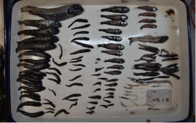 水产学院渔业海洋学实验室李建超、马舒扬、张文超三人负责南极鱼类调查。通过中层拖网、Bongo网、鱼类eDNA、底延绳钓多种调查手段相结合的方式,取得了丰硕的成果。此次调查共计站位69站,中层拖网捕获鱼类超过20种,数量近1500尾。除常见种外,此调查采集到稀有鱼种触手角鮟鱇为国内首次发现,该鱼种迄今在全球范围内仅被发现60余次。Bongo网捕获仔稚鱼数量超过130尾,鱼类eDNA调查获得水样超过120管,上述样品的获取保证了后续实验室分析的顺利开展,为深入研究南极海域鱼类生物学特征及生活史过程奠定了充分的样品积累,同时为了解调查海域鱼类种类组成及生物多样性提供了坚实基础。